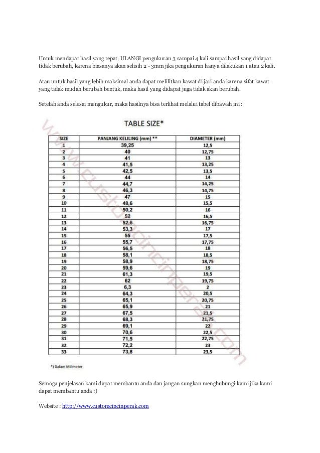 Jual Cara Menentukan Ukuran Cincin Tabel Ring Size Kota Surabaya Elok Nyentet Tokopedia