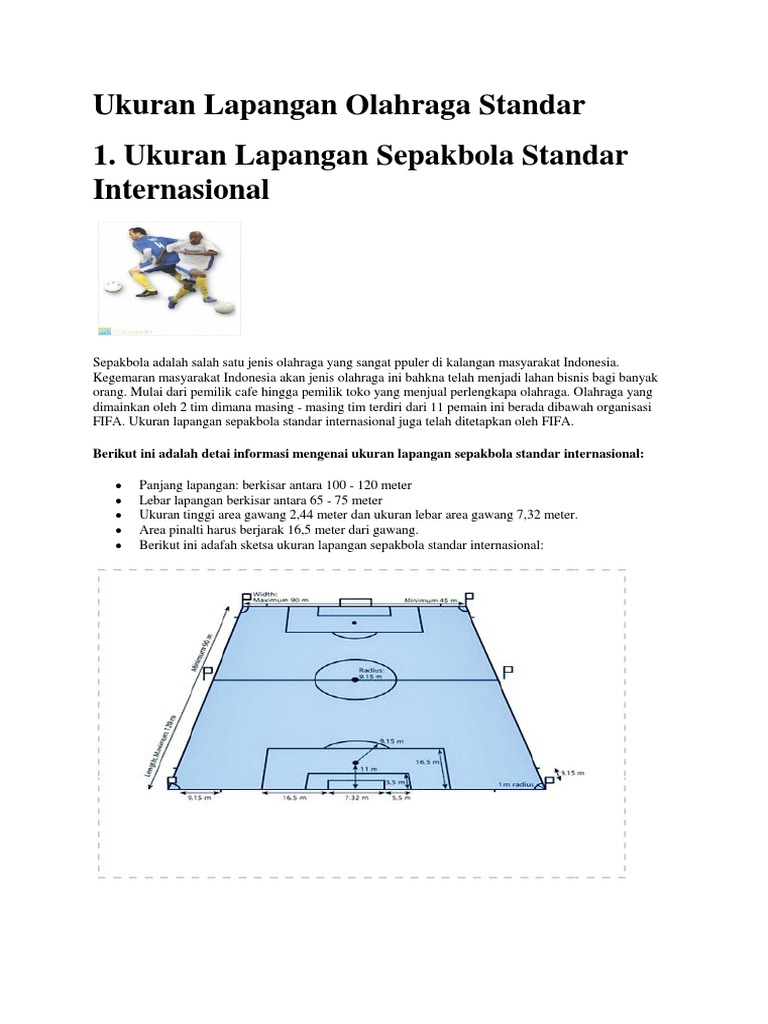 Cabang olahraga paling populer di dunia tersebut memiliki raksasa organisasi yang mengawasi setiap kegiatan olahraga sepak bola di seluruh dunia yakni bernama fifa. Sepak bola adalah sebuah permainan bola kaki yang mana dilakukan oleh 2 kelompok pemain. Ukuran lapangan sepak bola beserta gambar dan keterangannya lapangan sepak bola adalah sebuah tempatpermukaan tanah lapang yang ditumbuhi rumput dan digunakan untuk melakukan permainan sepakbola.
