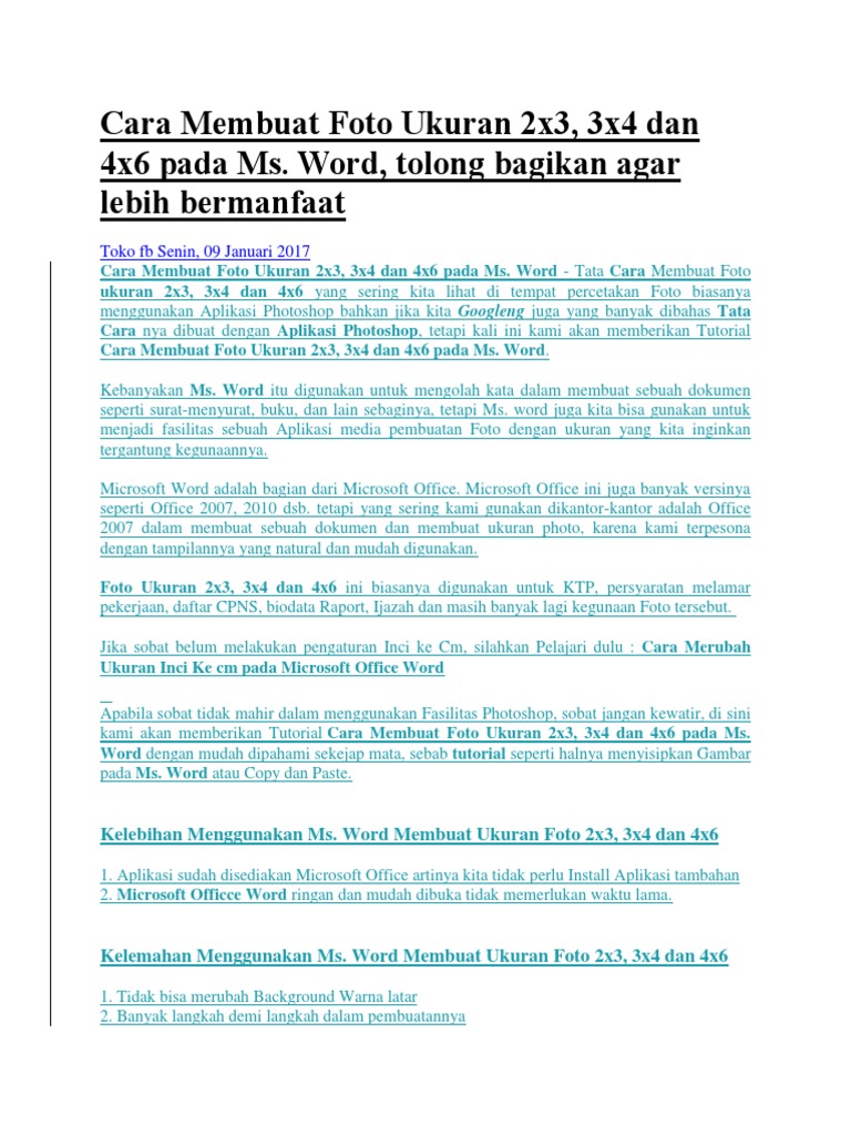 Cara Merubah Ukuran Foto Menjadi 3x4cm Dan 4x6cm Di Word