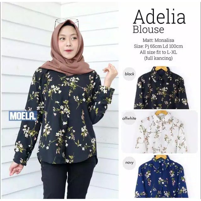 Delvi Jumbo Blouse Ori Moela Ld 110 Cm Kemeja Wanita Monalisa Motif Lengan Panjang Kerja Kuliah